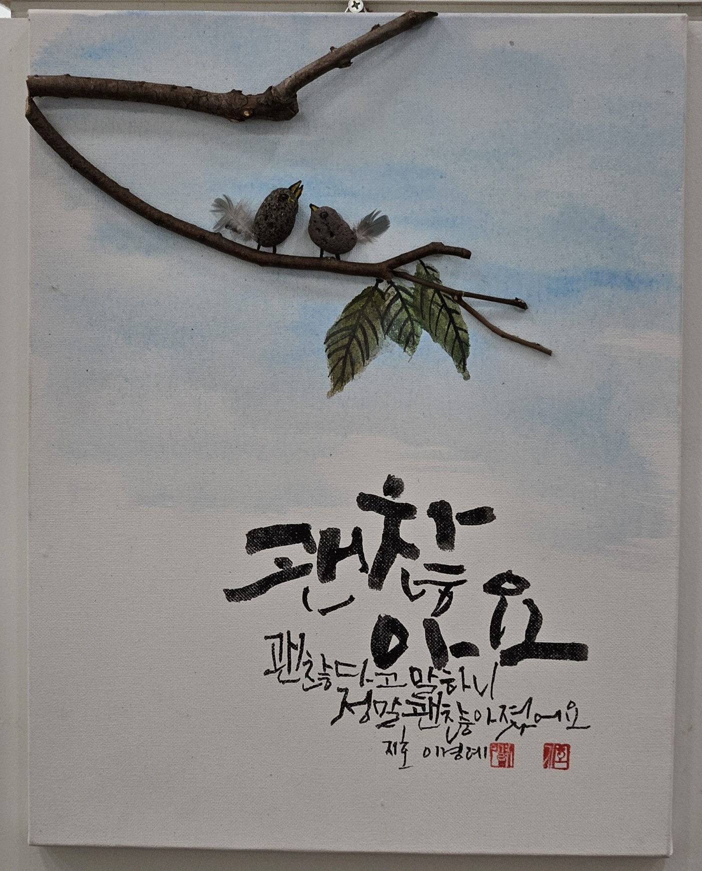 돌을 이용한 새 와 캘리그라피